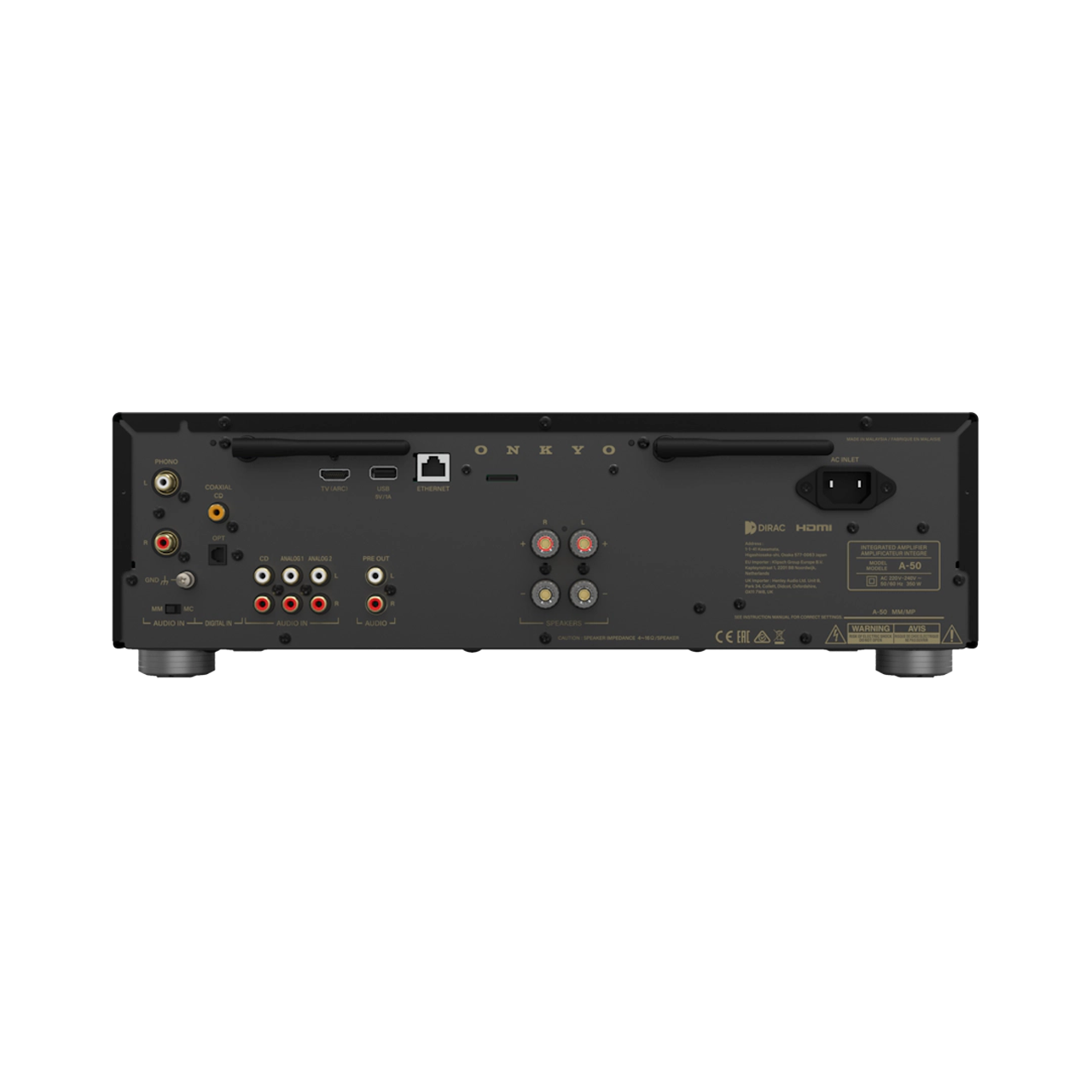 Onkyo A-50 được trang bị đầy đủ cổng kết nối cho hệ thống hi-fi hiện đại: