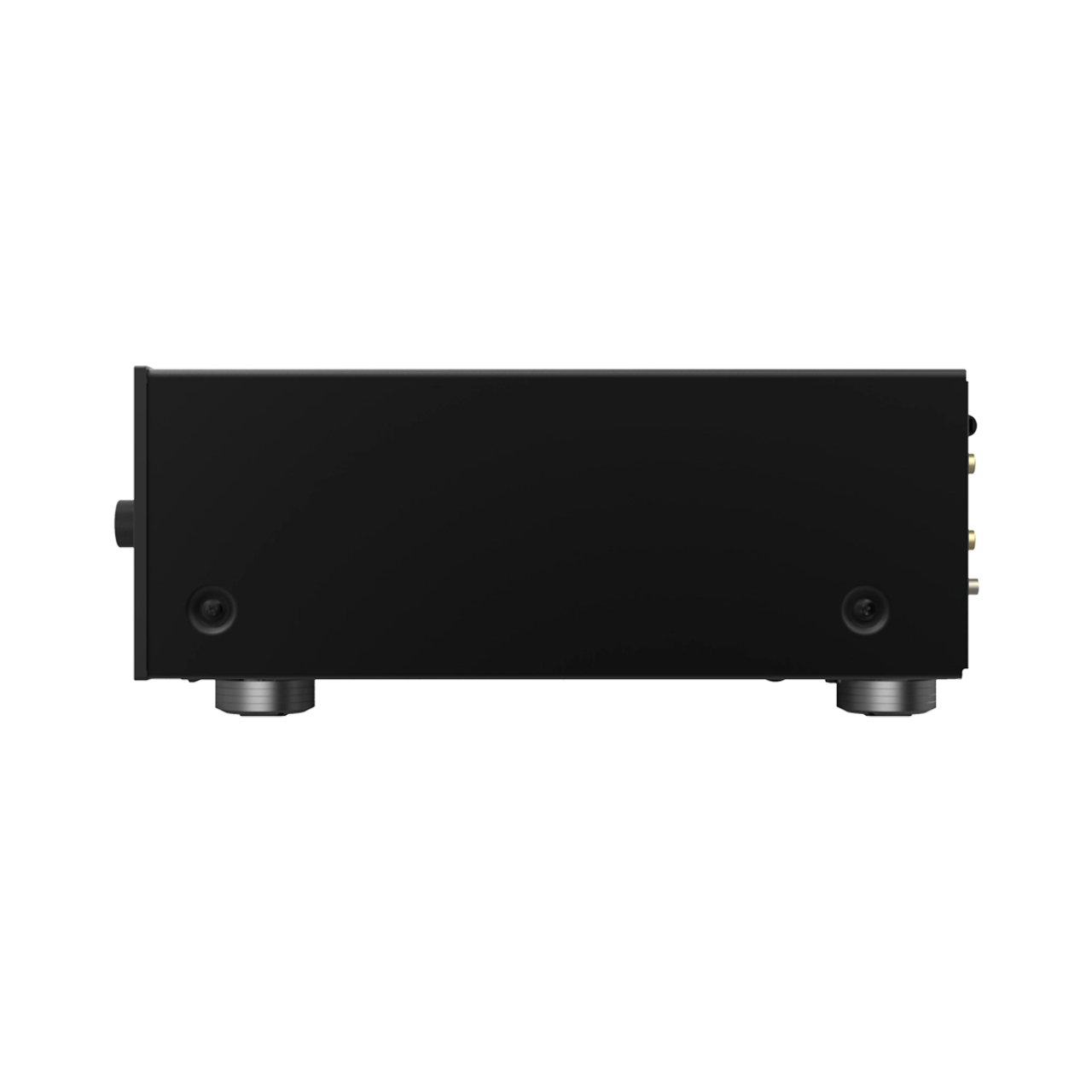 - Thiết kế tối giản, sang trọng: Vỏ máy bằng nhôm phay, núm xoay điều chỉnh chính xác, phù hợp với không gian nghe nhạc hiện đại.