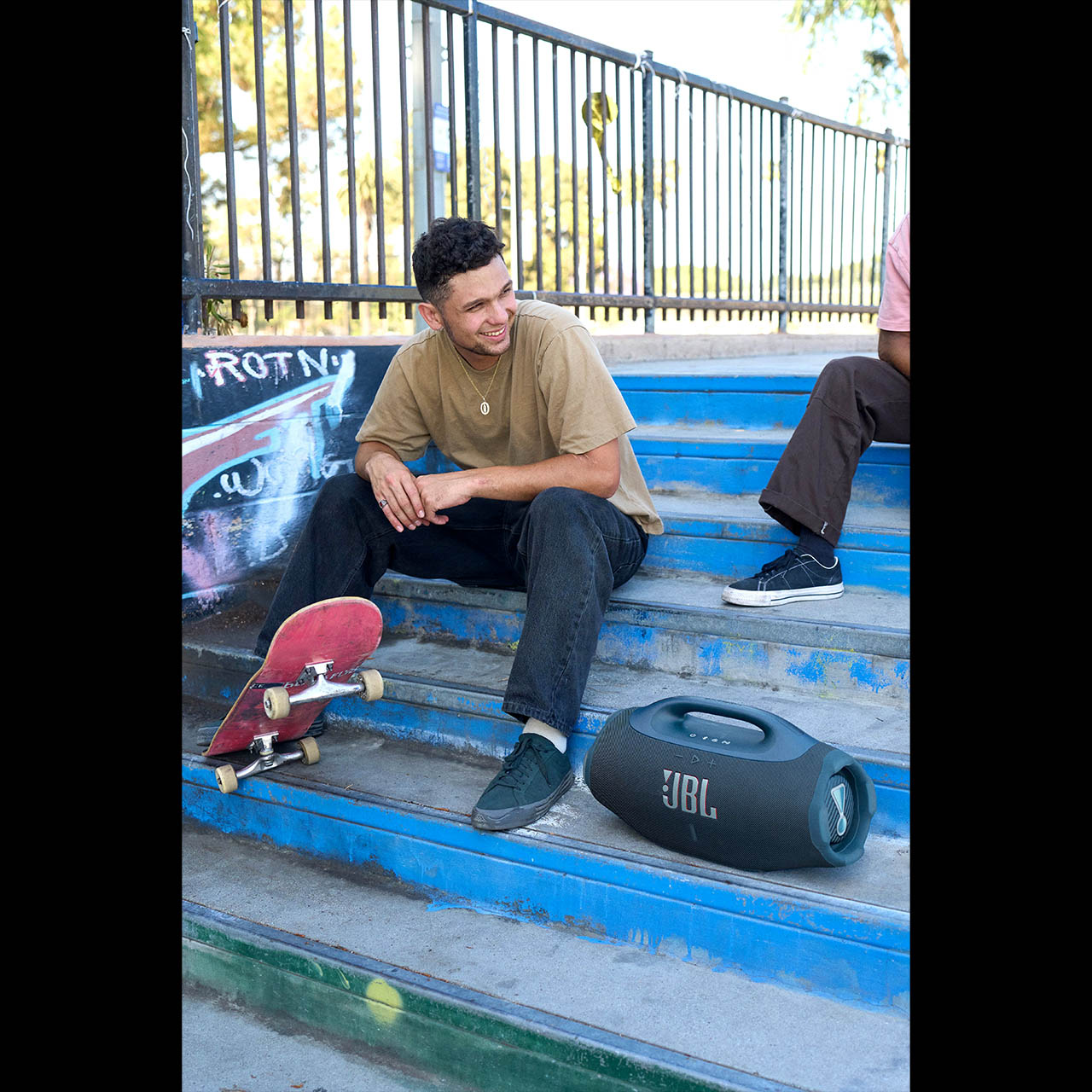 JBL Boombox 4 mang đến trải nghiệm âm thanh vượt trội, mạnh mẽ và bền bỉ – sẵn sàng khuấy động mọi không gian từ bãi biển, buổi cắm trại đến những bữa tiệc ngoài trời.