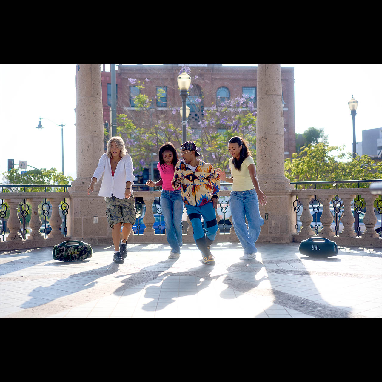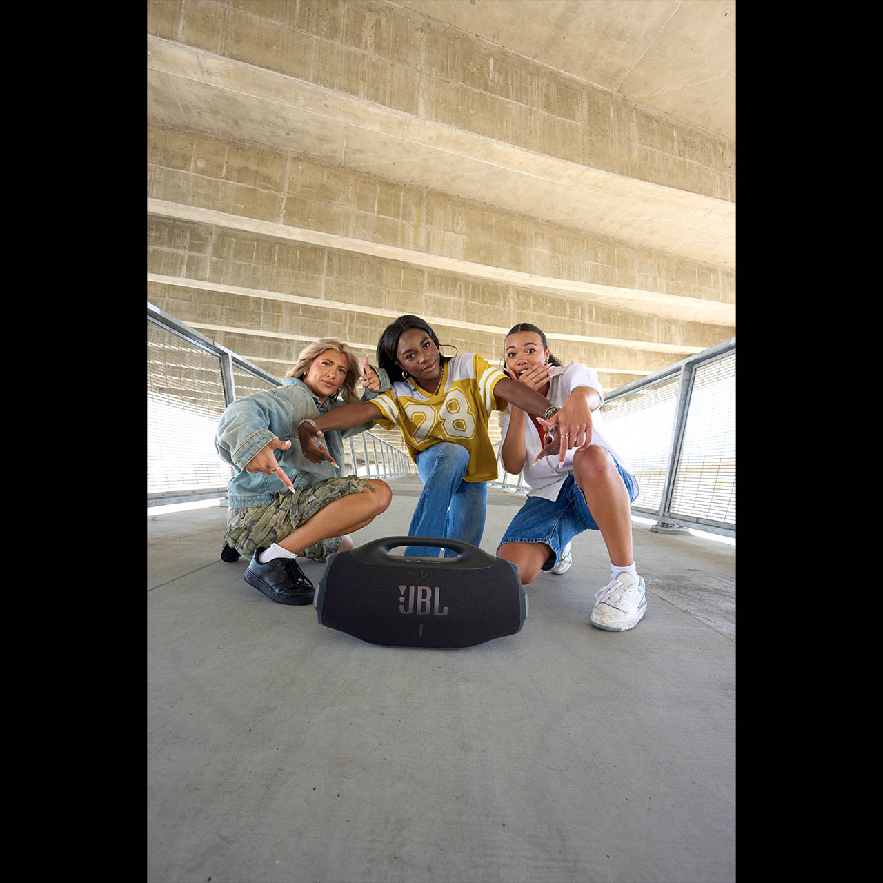 Được trang bị hệ thống JBL Pro Sound thế hệ mới, Boombox 4 cho âm thanh to, rõ, và dải trầm cực kỳ ấn tượng – sâu, chắc, và có lực.