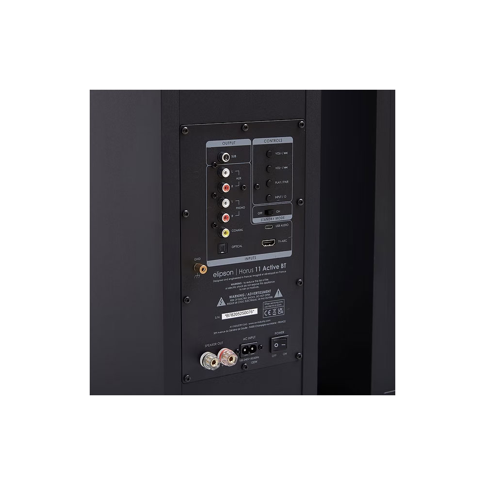 Loa floorstanding tích hợp amply Elipson Horus 11F Active BT được kế thừa thiết kế thanh lịch đặc trưng của Elipson, phiên bản active này kết hợp tinh tế giữa vẻ đẹp tinh tế, sức mạnh vượt trội và tính linh hoạt tối đa. Với Elipson Horus 11F Active BT mid-bass 130 mm cùng tweeter dome lụa cao cấp, ampli Class D tích hợp 2 × 50 W RMS và kết nối đa dạng (Bluetooth HD, TV ARC, Hi-Res audio, phono cho đĩa than), loa Horus 11F Active BT tái tạo âm thanh phong phú, đầy đặn, tinh tế ở mọi dải tần – bass sâu chắc, trung âm ấm áp, cao tần trong trẻo chi tiết – đồng thời trở thành hệ thống hoàn chỉnh, tự chủ hoàn toàn, dễ dàng nâng tầm mọi nguồn phát từ analog đến streaming.
