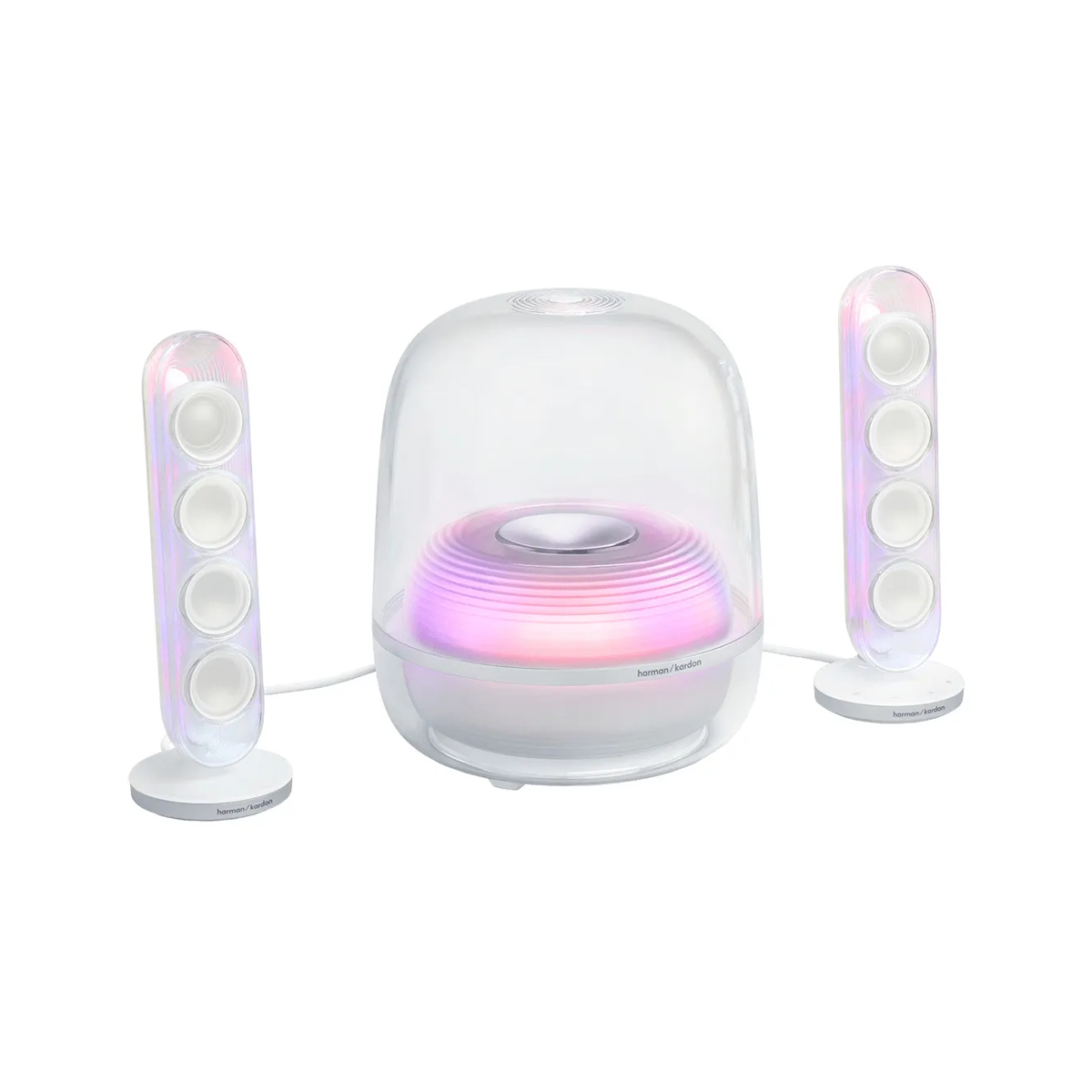 Với thiết kế đẹp như một tác phẩm nghệ thuật kết hợp cùng âm thanh Harman Kardon trứ danh, SoundSticks 5 là lựa chọn lý tưởng cho bàn làm việc, không gian phòng ngủ, phòng khách hoặc setup PC cao cấp. Đây là mẫu loa vừa đáp ứng tốt nhu cầu nghe nhạc – xem phim – giải trí hằng ngày, vừa tôn vinh gu thẩm mỹ của người dùng hiện đại. Đặc biệt, SoundSticks 5 bổ sung Party Mode và Bluetooth Auracast – hai công nghệ mới giúp kết nối đa thiết bị dễ dàng hơn bao giờ hết.