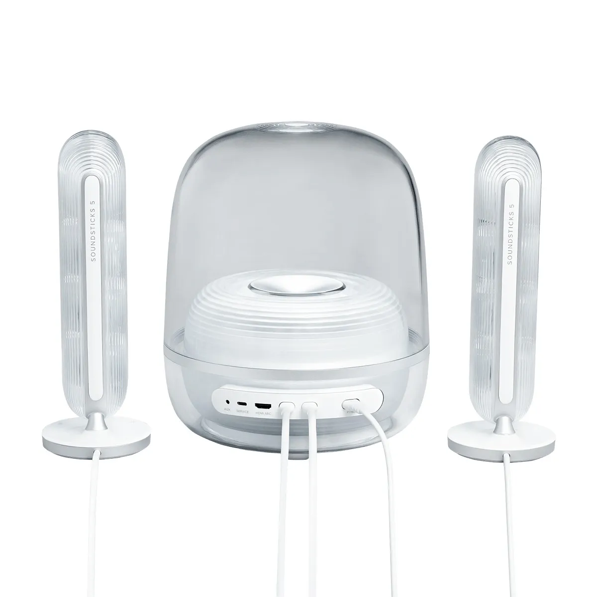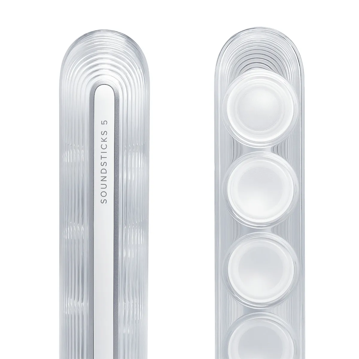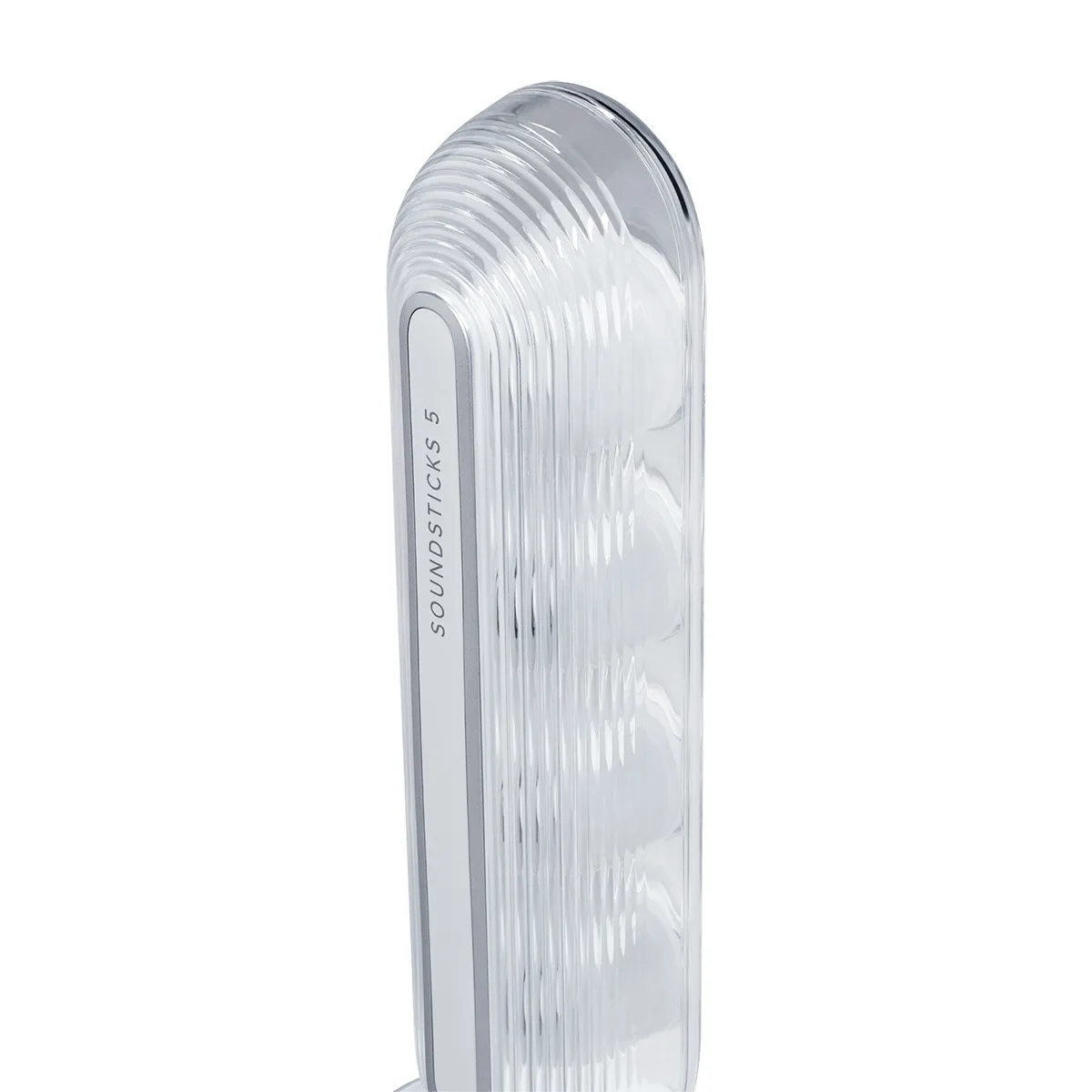 Phong cách thiết kế polycarbonate trong suốt tiếp tục được duy trì và tinh chỉnh trên SoundSticks 5.