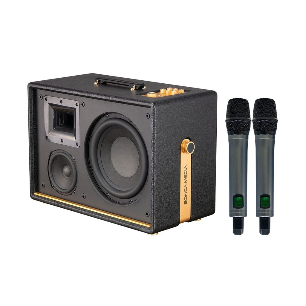 Loa Karaoke di động Soncamedia D'Auris 500 được trang bị hệ thống chống hú di tần FBC – công nghệ chống hú thông minh thế hệ mới. FBC tự động “dịch chuyển” tần số gây hú một cách tinh tế, giúp bạn hát thoải mái ở mức âm lượng lớn mà không lo xuất hiện tiếng hú chói tai hay rè máy. Kết hợp cùng công nghệ Enhancer – bộ nâng cấp âm thanh hiện đại – loa sẽ làm nổi bật và làm sạch cả giọng hát lẫn nhạc nền. Giọng ca trở nên rõ ràng, ấm áp và giàu cảm xúc hơn, trong khi nền nhạc được tách lớp chi tiết, sáng mịn, tạo cảm giác chuyên nghiệp như đang hát trong phòng thu. Hai công nghệ này phối hợp nhịp nhàng, mang lại trải nghiệm karaoke mượt mà, ổn định suốt nhiều giờ liền.
