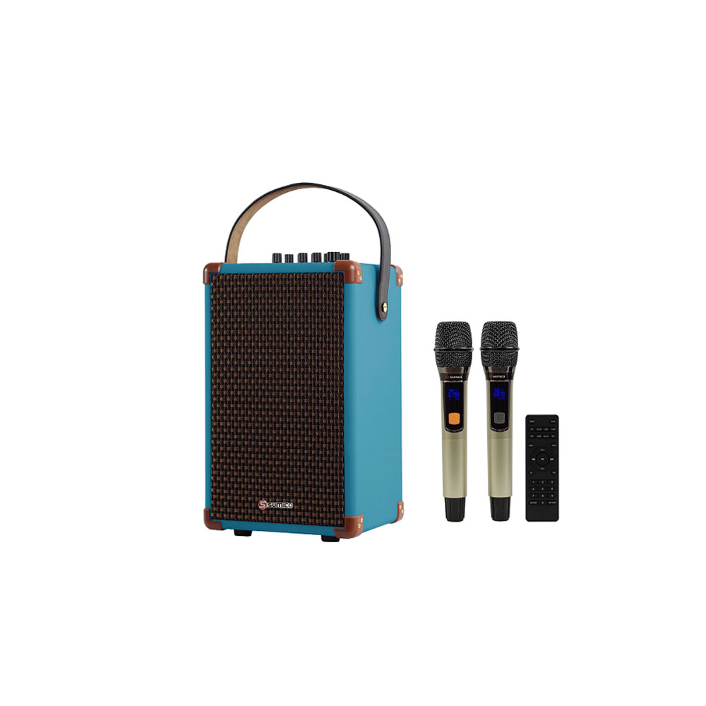 Loa Karaoke Sumico Bella 51 gây ấn tượng với phong cách thiết kế Retro pha lẫn nét hiện đại, tạo nên một tổng thể vừa hoài cổ vừa trẻ trung. Kiểu dáng nhỏ gọn dạng hộp đứng giúp tối ưu không gian sử dụng, đồng thời tăng tính linh hoạt khi di chuyển. Quai xách bọc da nhám mang lại cảm giác êm tay, chắc chắn khi cầm nắm hoặc mang theo.