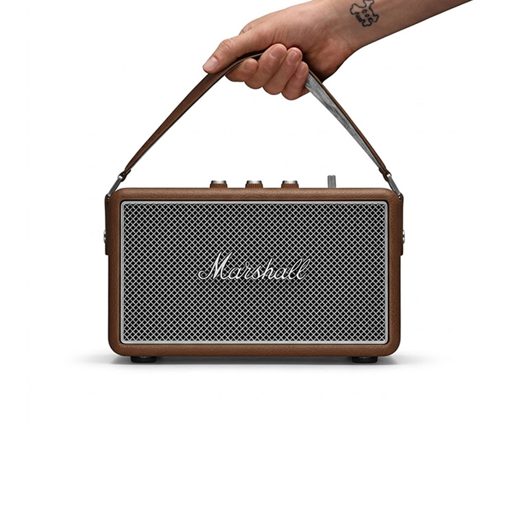Kilburn III giữ nguyên nét đặc trưng của Marshall với lớp vỏ vinyl cao cấp, lưới kim loại bền bỉ và logo Marshall nổi bật. Loa có kích thước 273 × 150 × 169 mm, nặng 2.8 kg, dễ dàng mang theo nhờ dây đeo lấy cảm hứng từ dây đàn guitar. Hai tùy chọn màu sắc Black & Brass và Cream mang đến vẻ ngoài sang trọng, phù hợp với mọi phong cách.