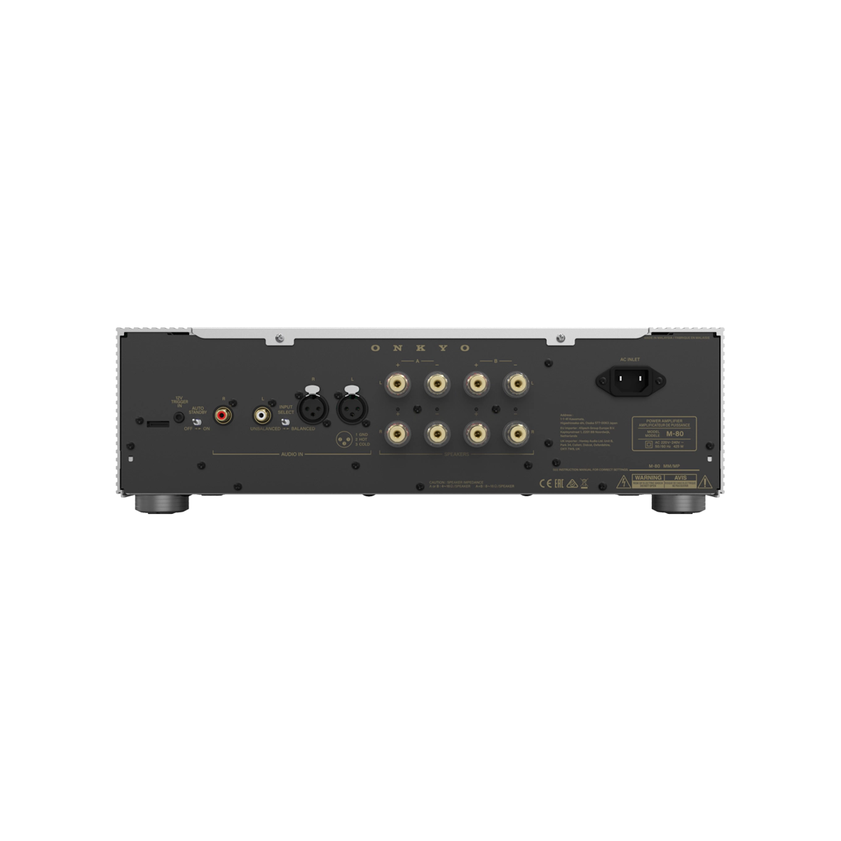 Với công suất đầu ra 130 W/kênh (8Ω, 20Hz – 20kHz, THD 0,07%, 2 kênh hoạt động) và 200 W/kênh (4Ω, 1kHz, THD 0,7%, 2 kênh hoạt động), Onkyo M-80 có thể dễ dàng điều khiển các cặp loa lớn, tái tạo âm thanh giàu độ động và thông tin âm học.