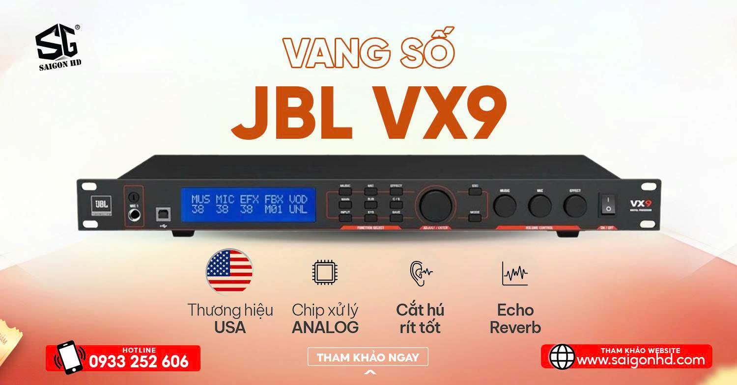 Mixer JBL VX9 – Dòng mixer karaoke & sân khấu chuyên nghiệp với chip DSP hiện đại, chống hú rít hiệu quả, kết nối đa dạng. Giải pháp tối ưu cho gia đình, kinh doanh và biểu diễn.