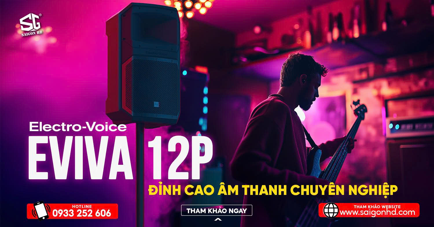 Electro-Voice EVIVA 12P là loa active 12 inch công suất 1000W, tích hợp DSP thông minh và mixer 2 kênh, mang đến âm thanh mạnh mẽ, chi tiết. Lý tưởng cho hội trường, sân khấu, DJ, karaoke và sự kiện chuyên nghiệp.