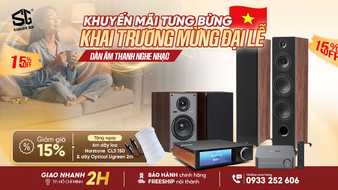 Khuyến mãi dàn nghe nhạc stereo 2 kênh dịp 30/4 – 1/5 và sự kiện khai trương showroom Vạn Kiếp trên toàn bộ hệ thống showroom SAIGON HD. Nhiều combo Hi-Fi giảm đến hơn 21 triệu, hỗ trợ lắp đặt & trả góp 0%.