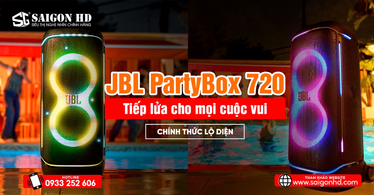 Ra mắt loa kéo Karaoke Bluetooth di động JBL PartyBox 720 chính hãng mang đến âm thanh bùng nổ chuẩn JBL Original Pro Sound với công suất mạnh mẽ 800W RMS, hệ thống bass kép 9 inch, cùng hiệu ứng ánh sáng sống động. PartyBox 720 tích hợp Bluetooth 5.4, Auracast, ngõ vào Mic – Guitar – XLR, và chuẩn chống nước IPX4